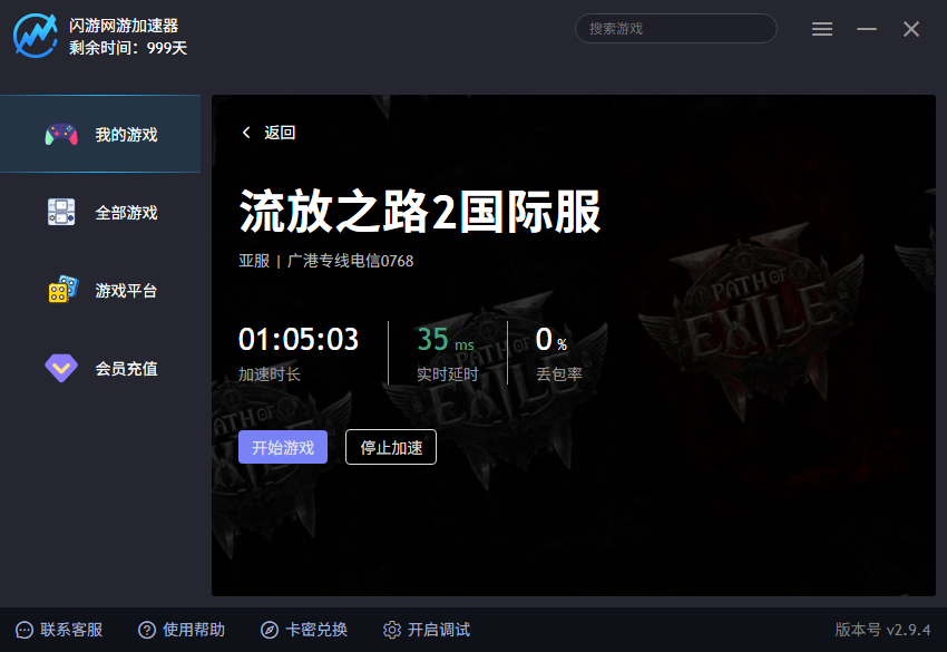 不同于通用型加速器,闪游加速器针对《流放之路2国际服》深度适配: