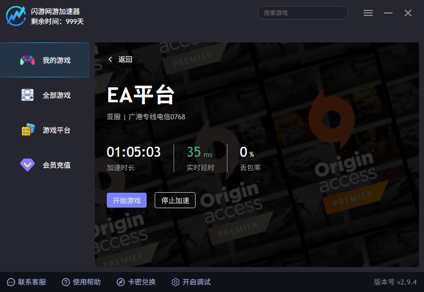 不同于通用加速器,闪游加速器针对EA平台深度适配: