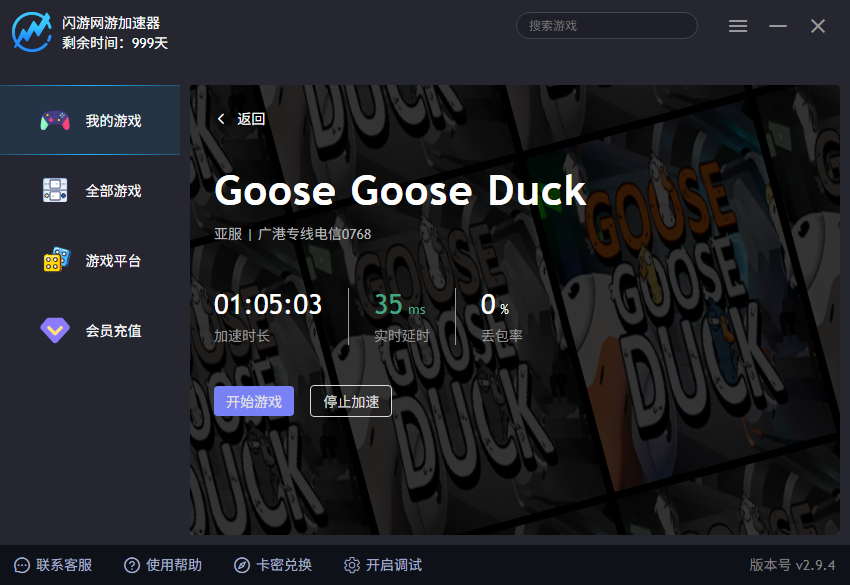 更关键的是——闪游加速器对Goose Goose Duck支持全协议深度加速(含WebRTC语音、WebSocket心跳、UDP动作帧),非简单端口转发,真正解决底层通信顽疾。